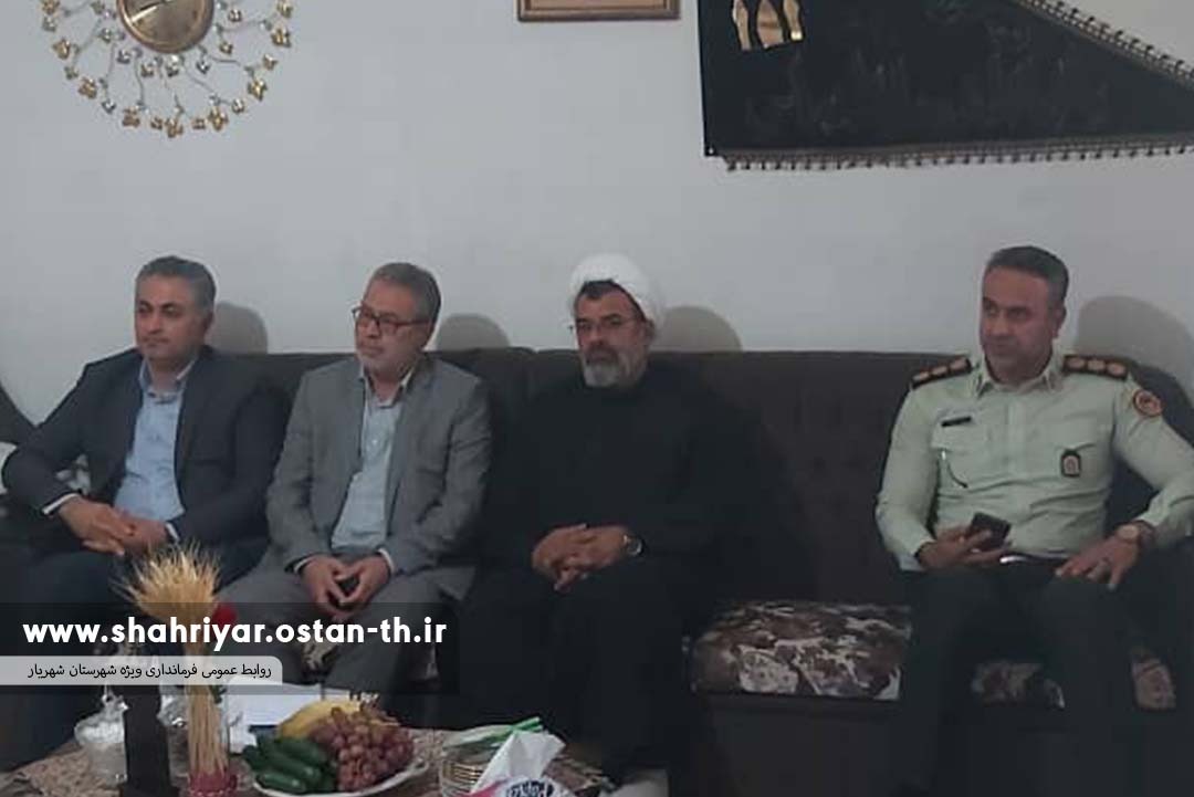 به گزارش روابط عمومی فرمانداری ویژه شهرستان شهریار؛ مسئولین و مدیران شهرستان شهریار با حضور در منزل شهیدان سید محمد حسینی فردویی و شهید حسن قنبری با خانواده های معظم این شهیدان دیدار و گفتگو کردند.