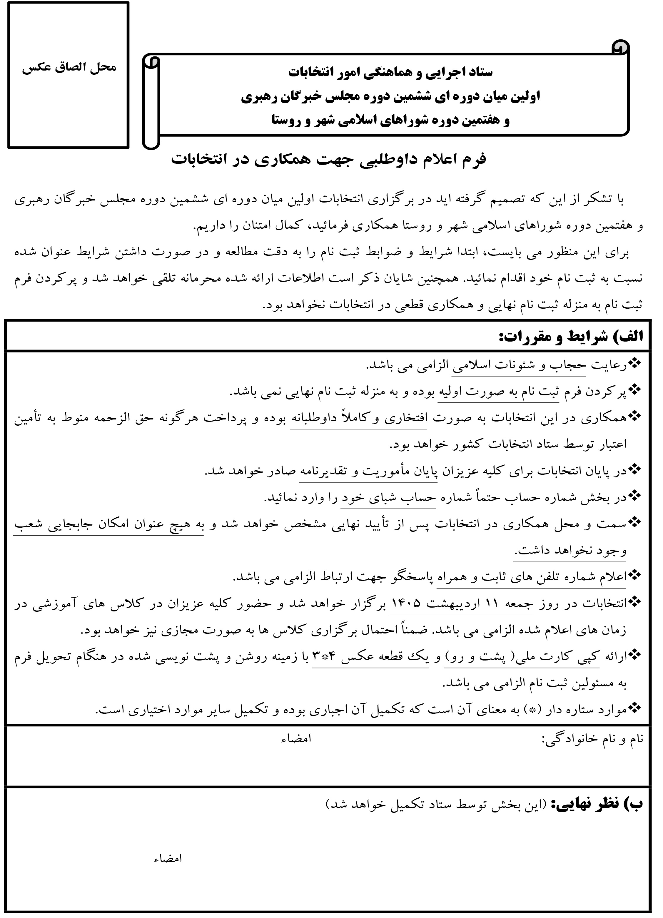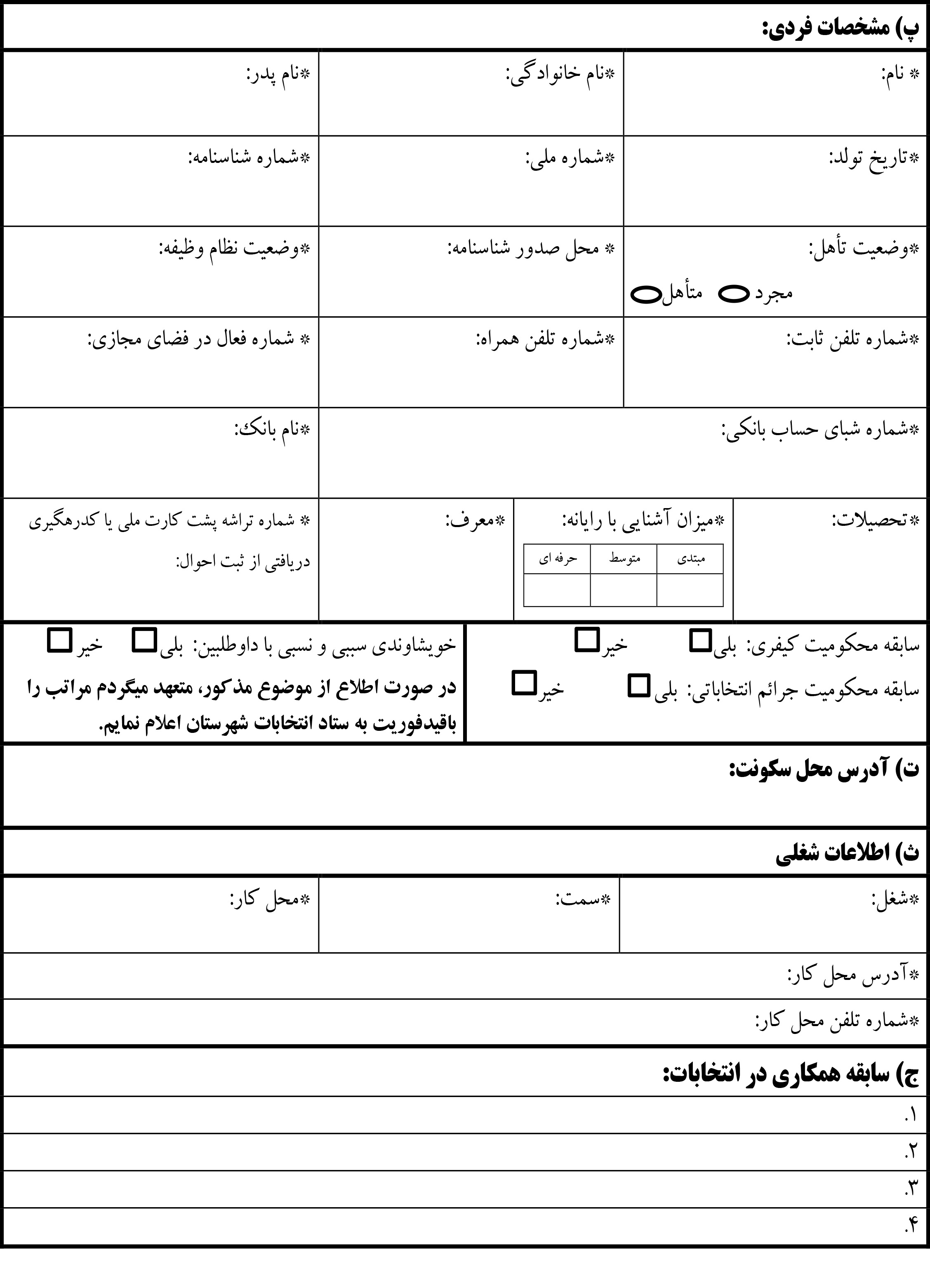 کمیته ساماندهی نیروی انسانی ستاد انتخابات شهرستان شهریار / فرم اعلام داوطلبی جهت همکاری در انتخابات